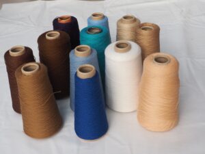 Bei dem Schal, dessen Entstehungsgeschichte ich hier mitschreibe, wollte ich ursprünglich ein Gefühl ausdrücken, ein weiches, wohliges Gefühl. Wie ein ruhiger Herbsttag mit warmen Sonnenstrahlen. Das Garn soll weich und fein sein. Ich stelle Merinomischungen in Erd- und Blautönen zusammen, aber dabei fehlt mir noch die Frische.