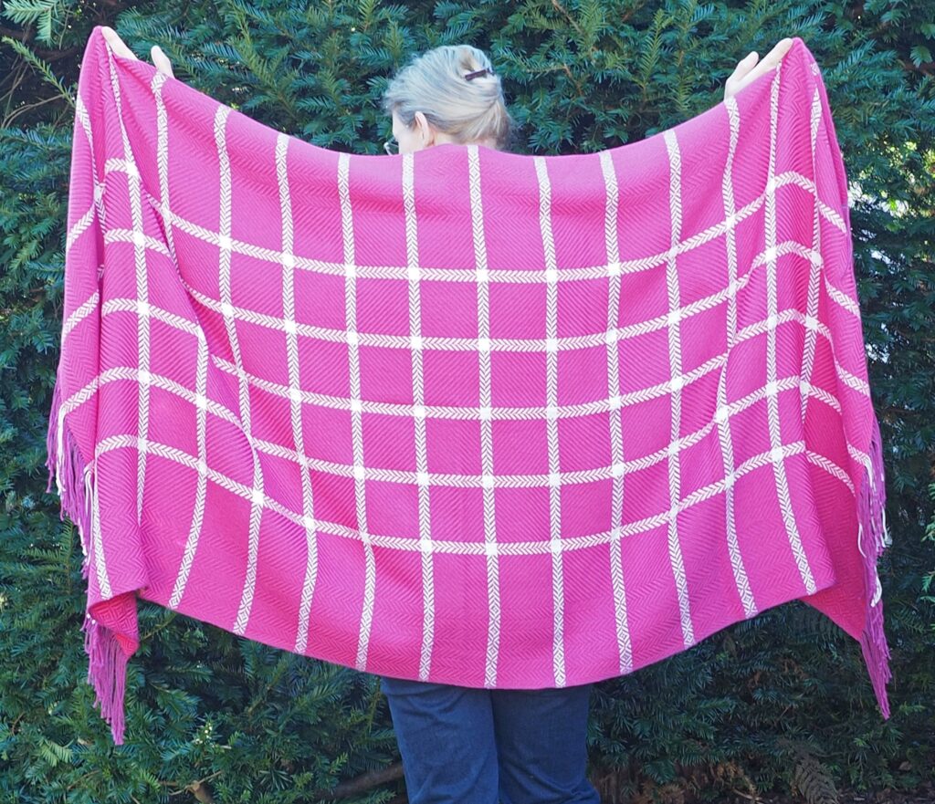 Im nächsten Schritt wird festgelegt, welche Bindung und welches Webmuster der Schal bekommen soll. Die Bindung, also die Reihenfolge und die Anzahl in der sich die Fäden kreuzen, beeinflusst, wie fest oder fließend das Gewebe ist. Das Webmuster wird sozusagen über die Bindung gelegt und bestimmt im Wesentlichen die Optik des Gewebes.