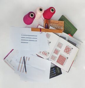 Die Idee zu einem Webstück kann von vielen Seiten kommen. Mal inspiriert mich ein Garn, das im Regal steht oder das ich gesponnen habe, mal sind es Farben, die ich auf einem Bild oder in der Natur gesehen habe und abbilden möchte, oder es inspiriert mich eine bestimmte Webstruktur, ein Webmuster oder eine spezielle Webtechnik, die ich anwenden möchte.