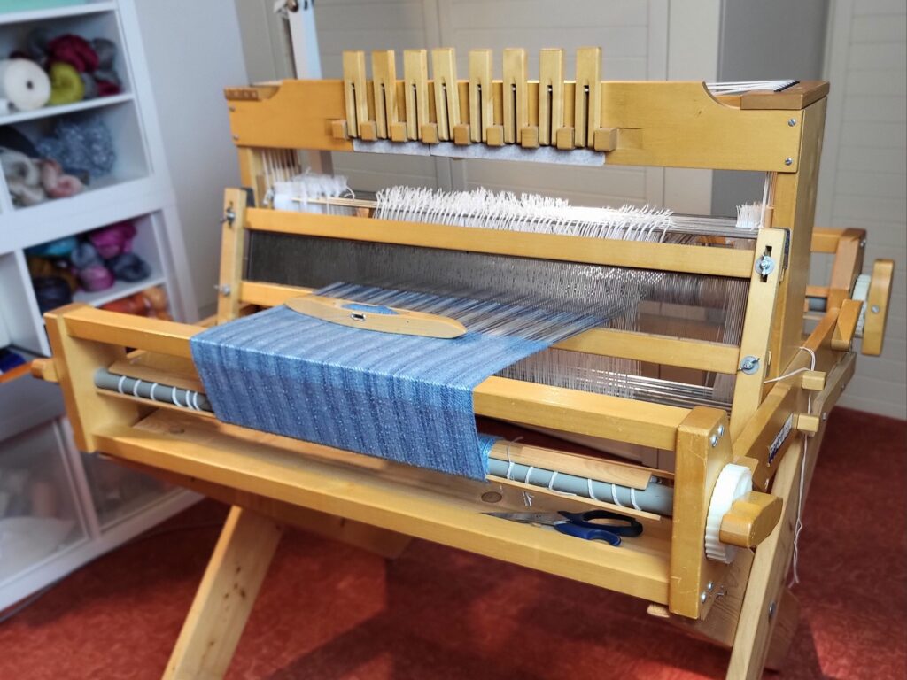 Für den Kurs „Eigenes Projekt“ arbeiten Sie mit Ihrem eigenen Material. Entweder richte ich Ihnen den Webstuhl damit ein, oder Sie machen alles, von der Gewebeberechnung bis zum Aufbinden der Tritte unter Anleitung und mit Hilfestellung, selber .