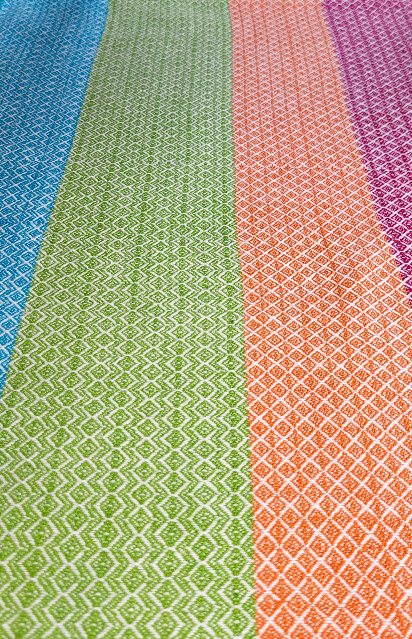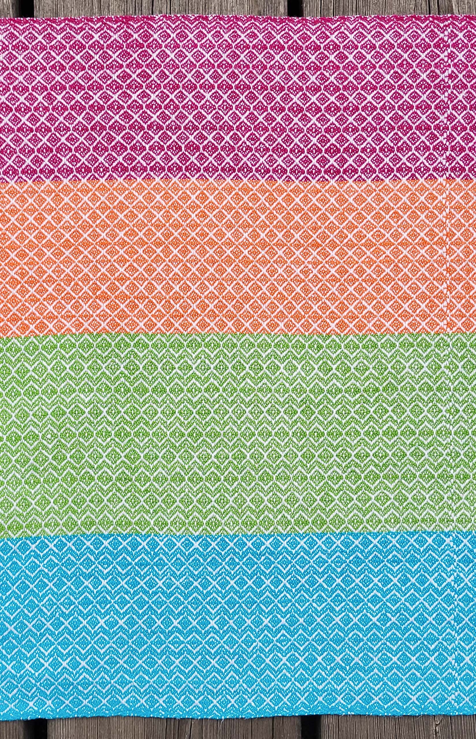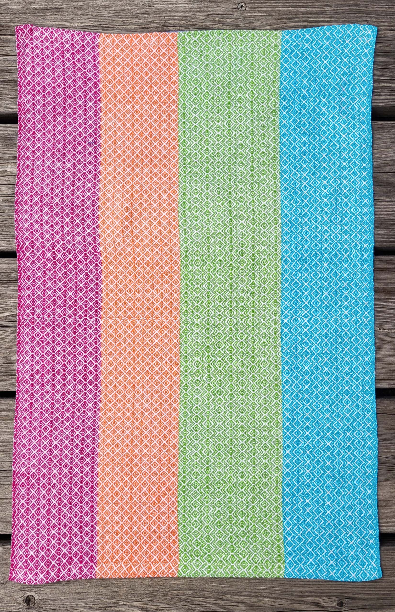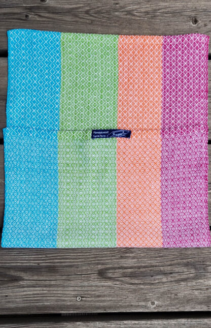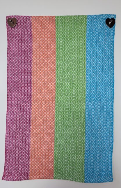 “Farbenfroh” ist eine Serie von acht Küchentüchern. Jedes Tuch hat ein anderes Webmuster, keines ist wie das andere. Manchmal sind sogar mehrere Muster in einem Tuch kombiniert.