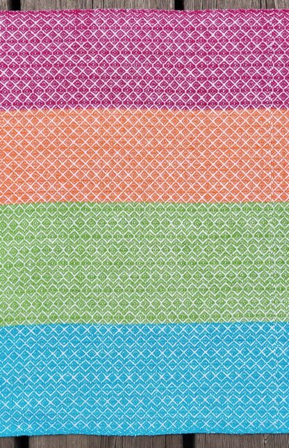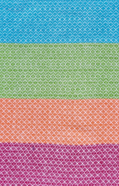Das Geschirrtuch “Farbenfroh 1” sorgt für gute Laune in der Küche oder wo immer es eingesetzt wird. Jede der vier Farben hat ein anderes Grundmuster, das durch ein naturweißes Garn in die harmonischen, hellen aber kräftigen Farben eingewebt wurde.