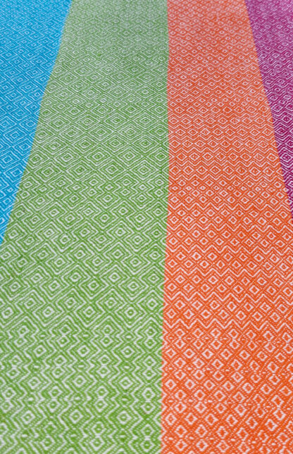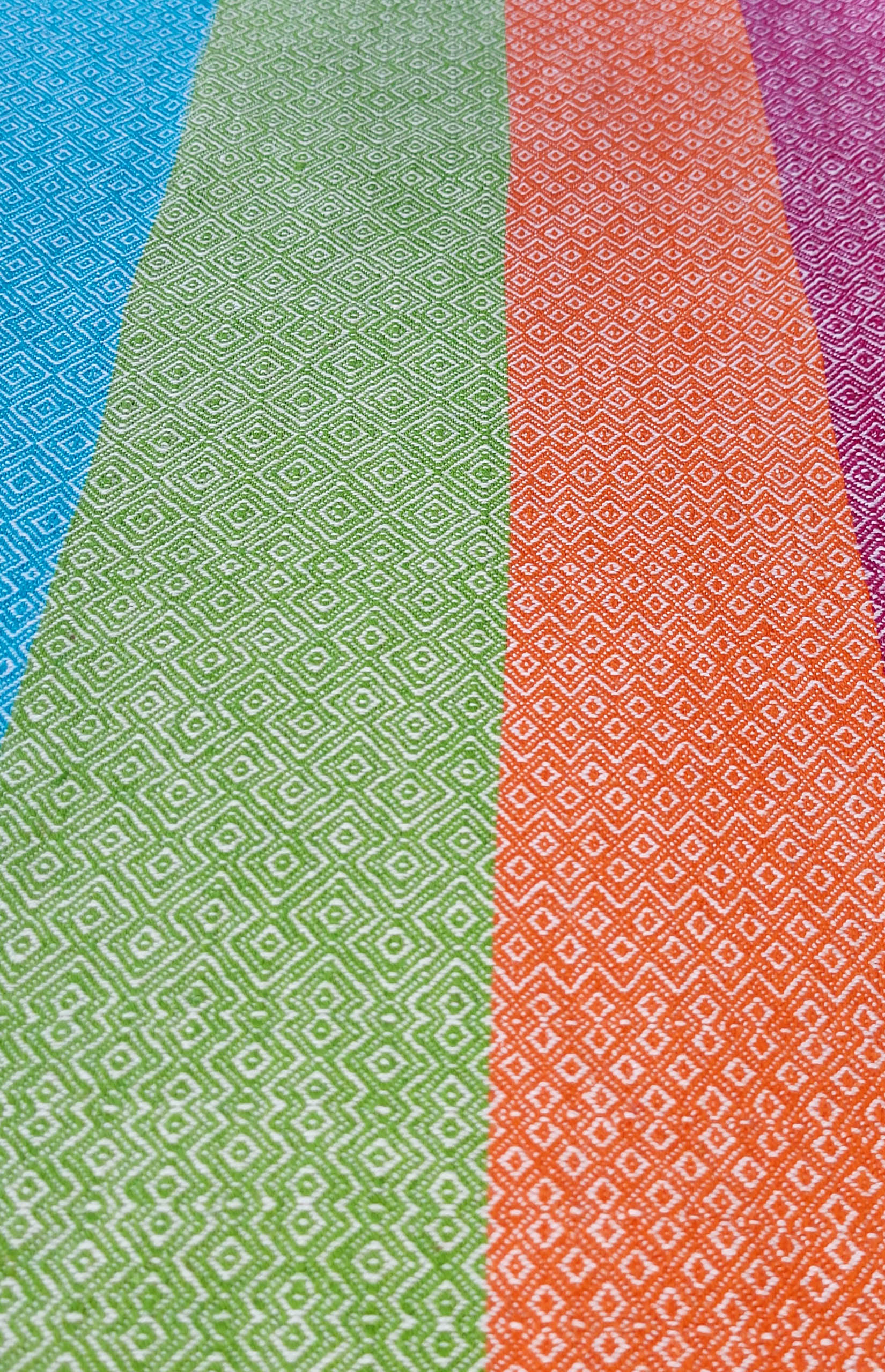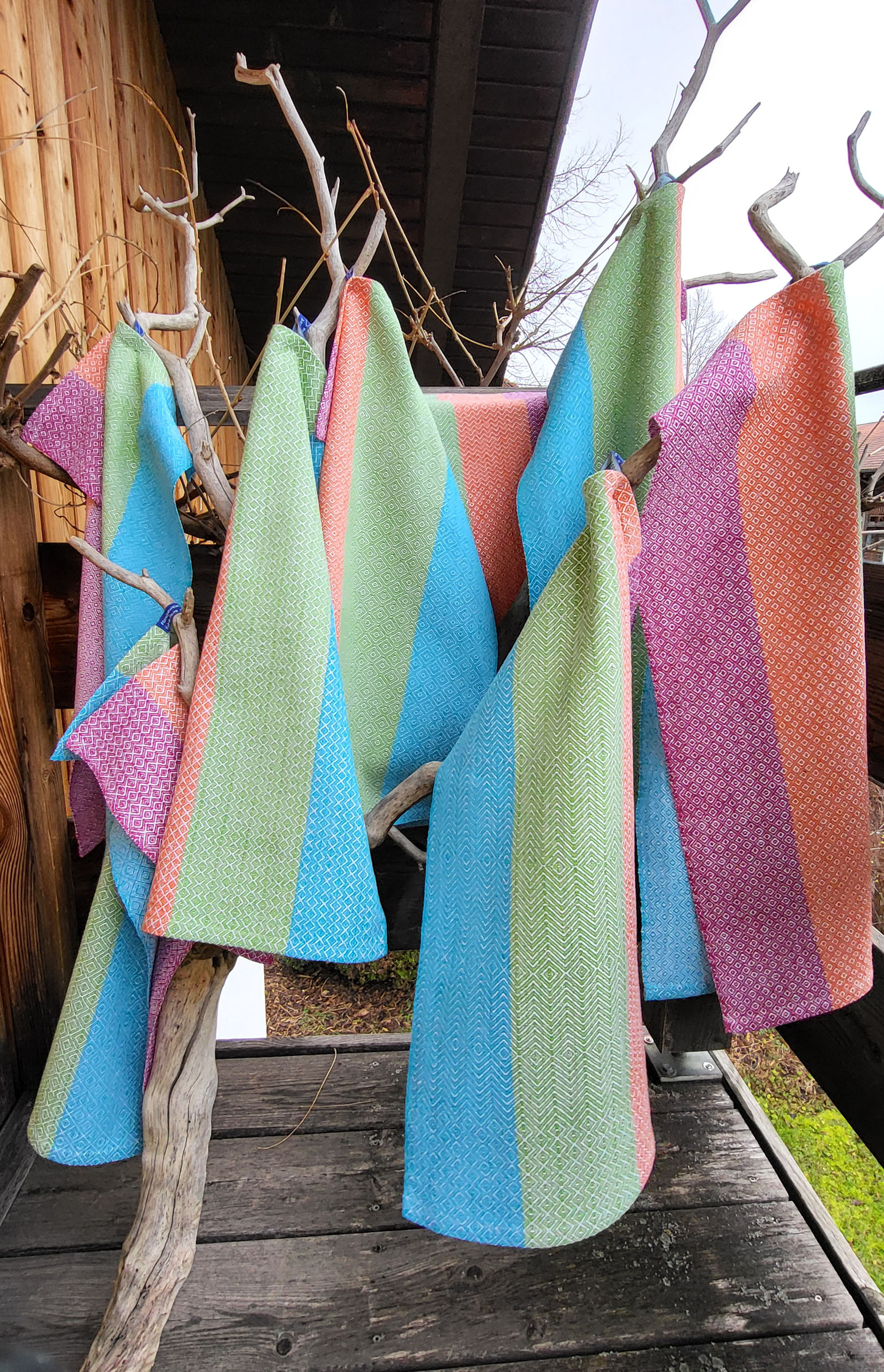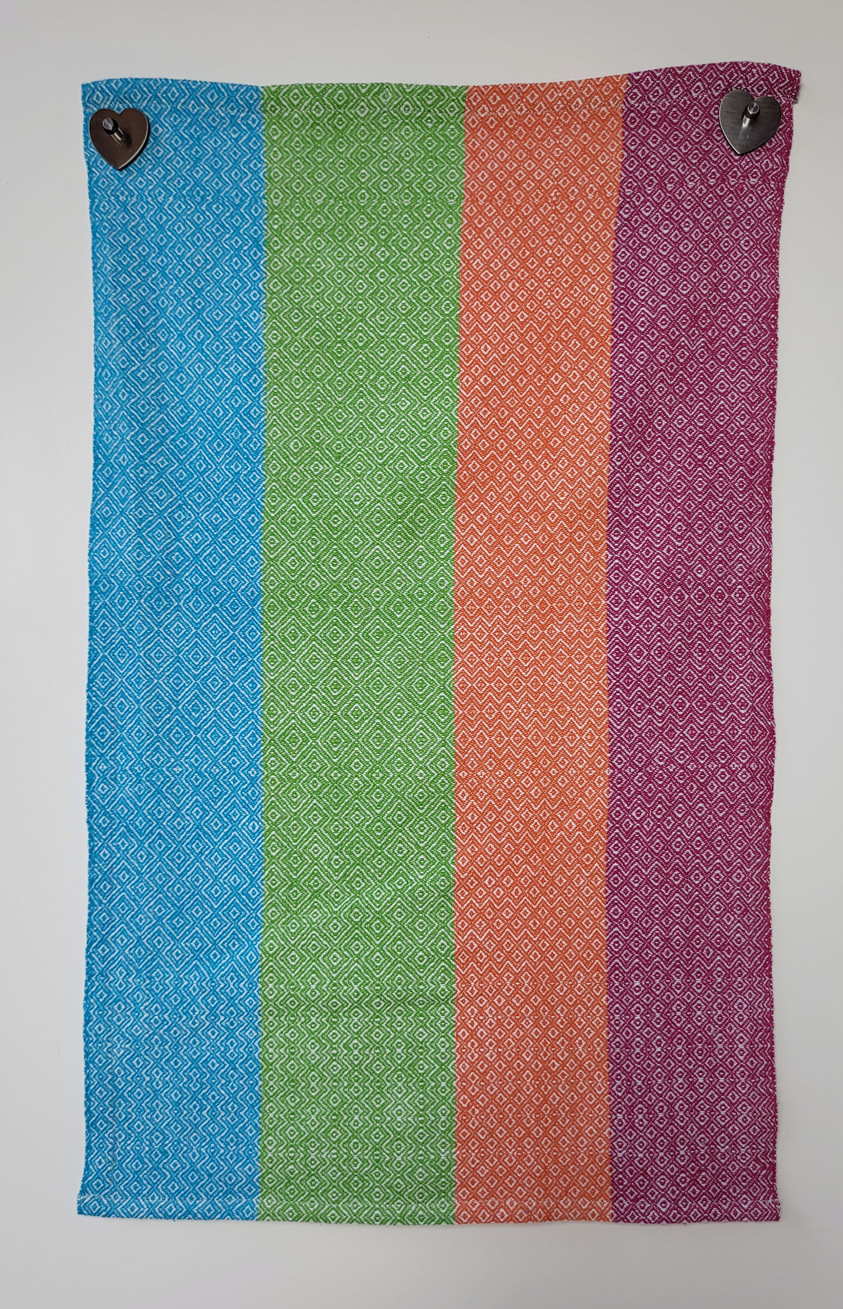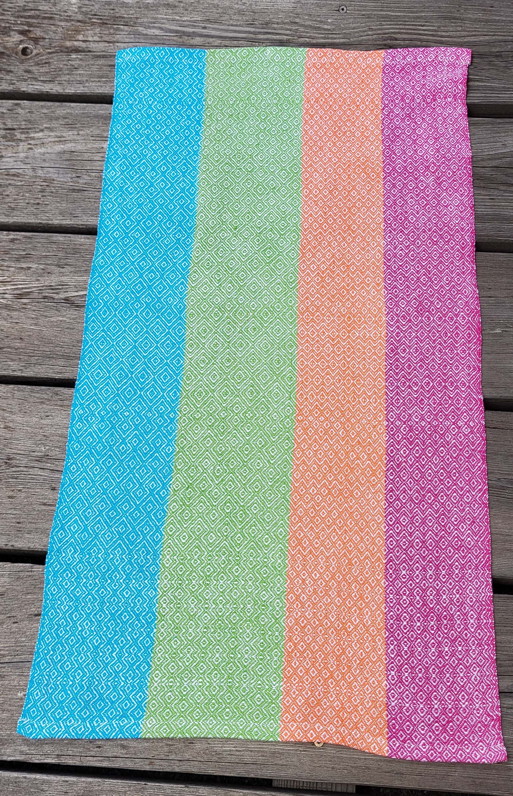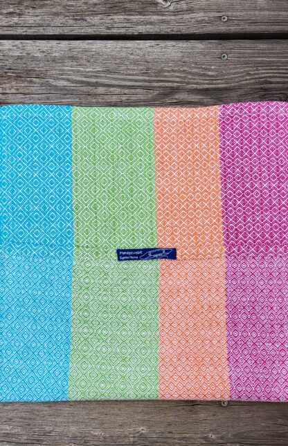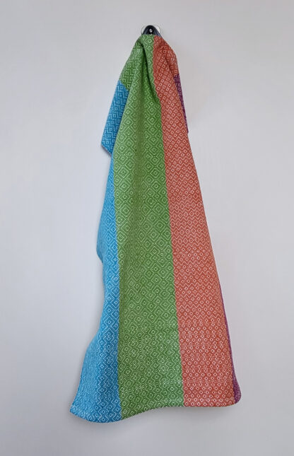“Farbenfroh” ist eine Serie von acht Küchentüchern. Jedes Tuch hat ein anderes Webmuster, keines ist wie das andere. In diesem Tuch sind sogar mehrere Muster miteinander kombiniert.