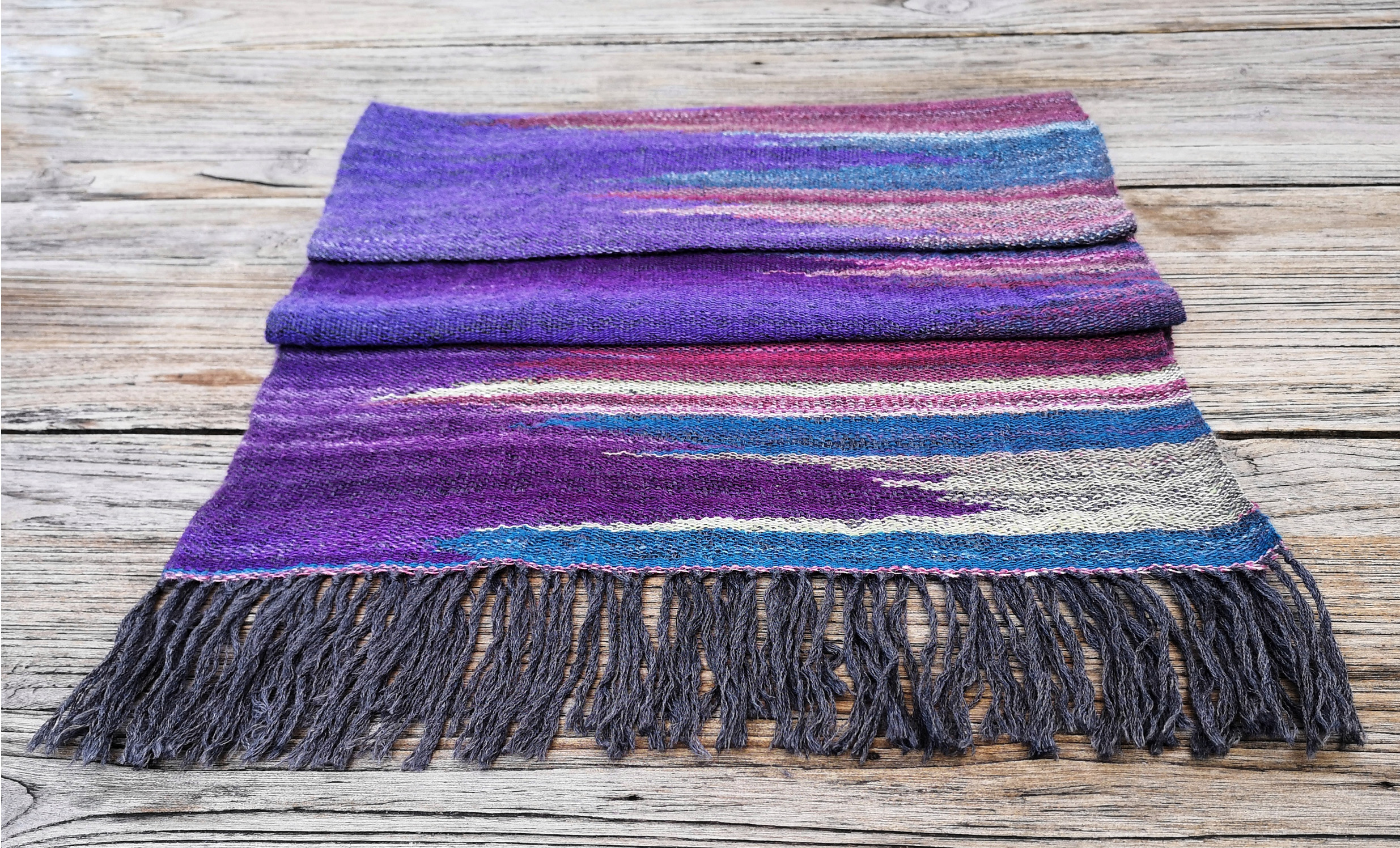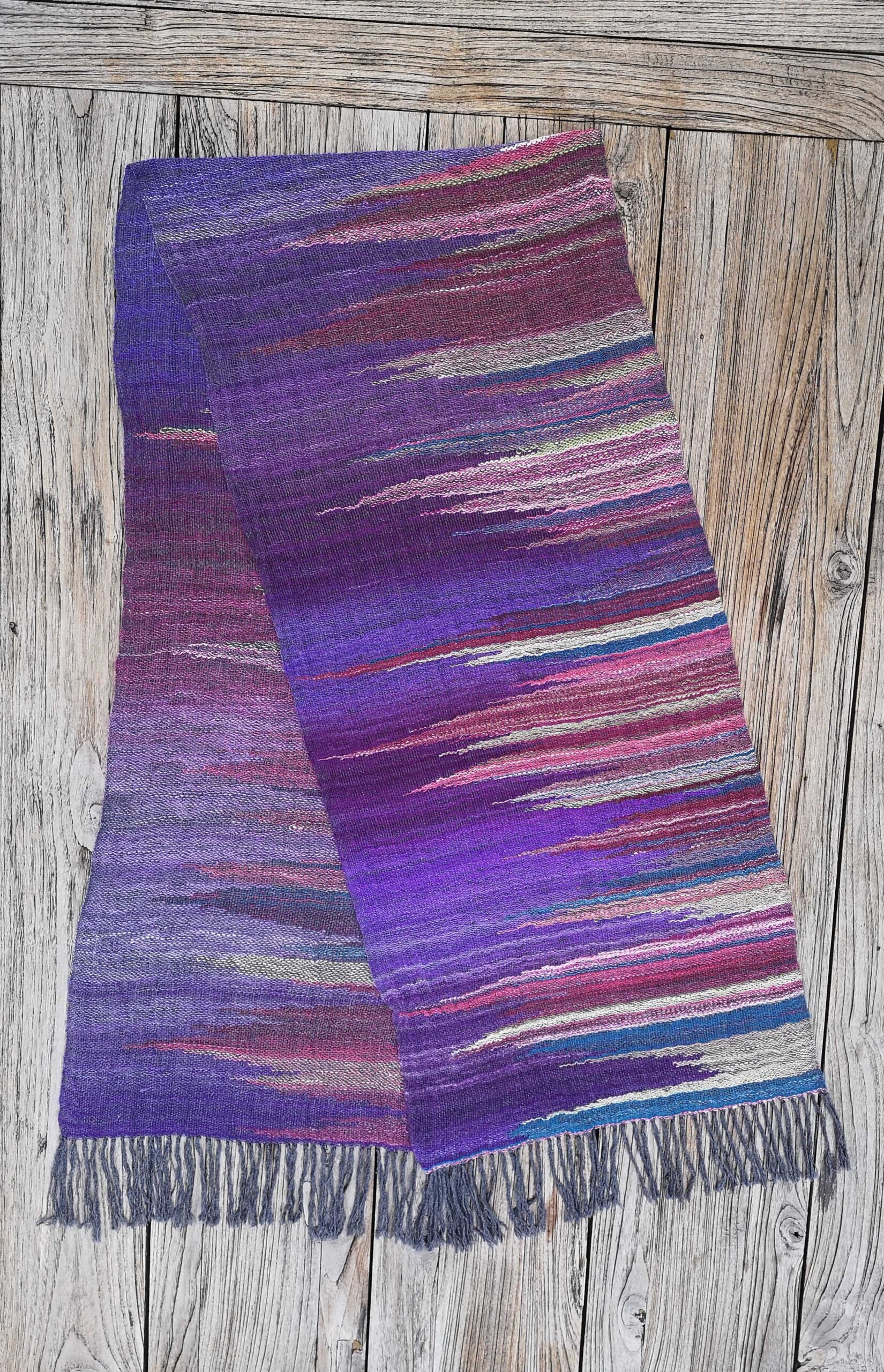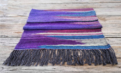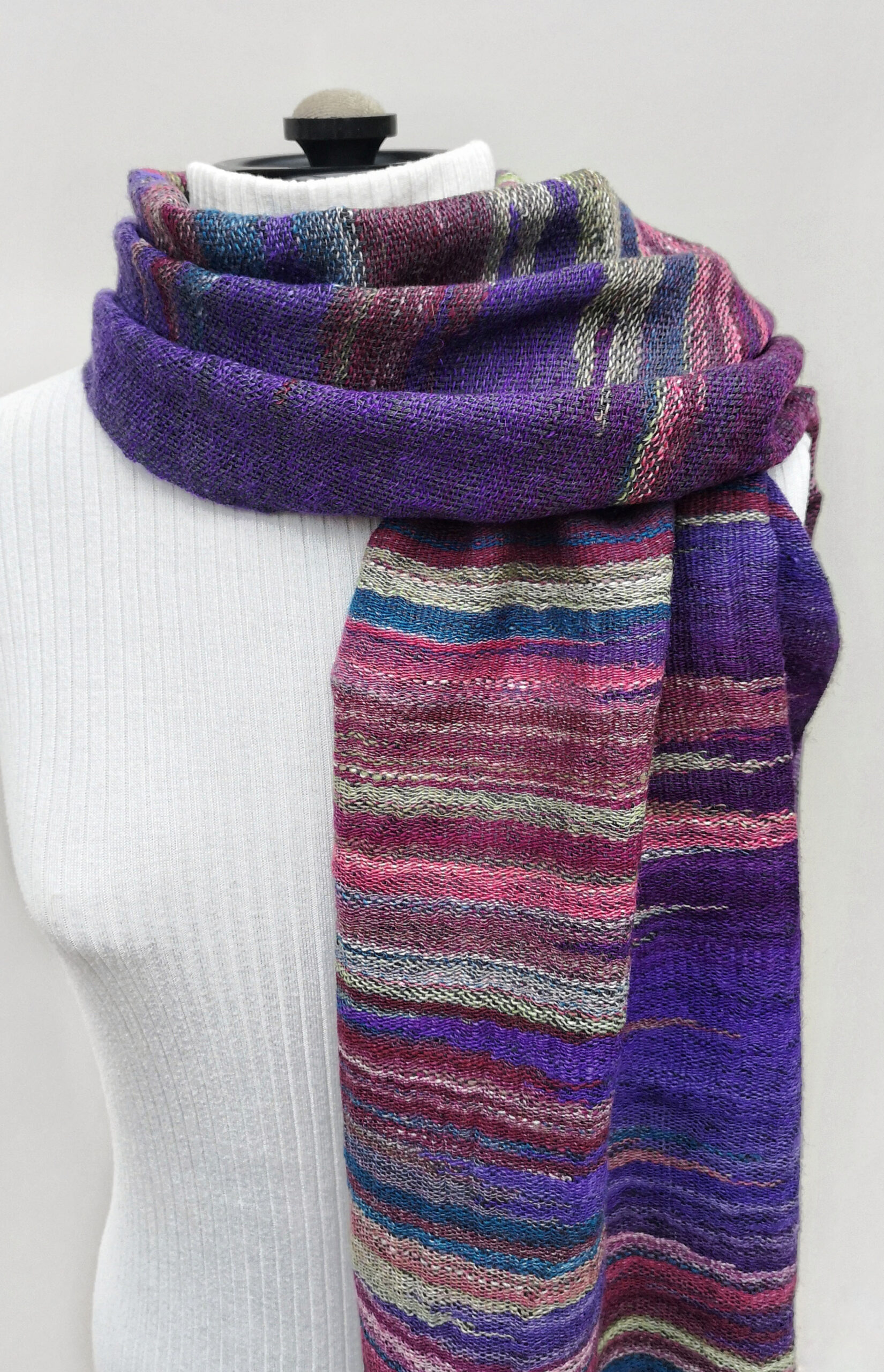 Der Lila Wasserfall ist ein Schal für jede Jahrezeit, da er leicht, dünn, aber dank des hohen Wollanteils auch warm ist.
